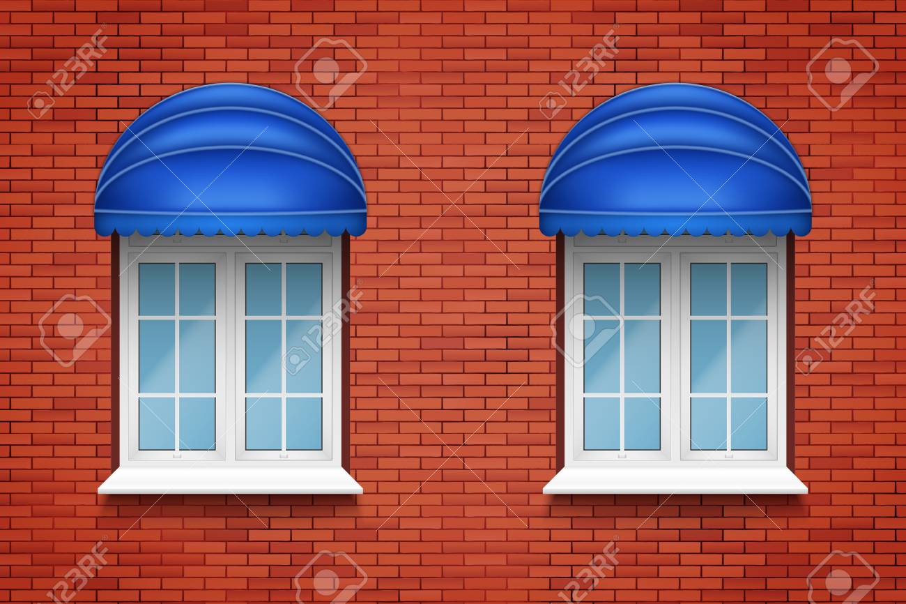 Metal Plastic Pvc Arch Windows With Fabric Awning In Brick Wall