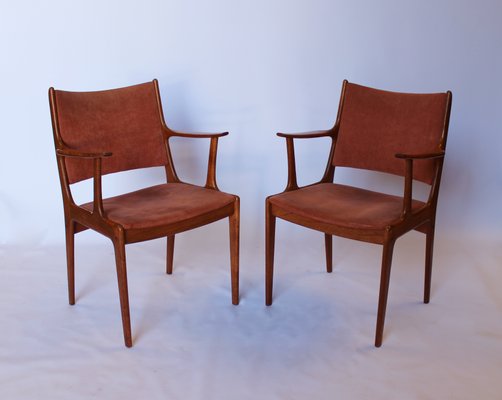 Armchairs In Teak Pale Pink Suede By Johannes Andersen For Uldum Mobelfabrik 1960s Set Of 2