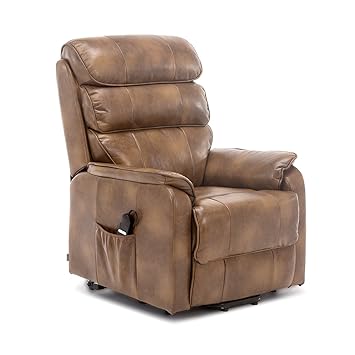 More4homes Buckingham Dual Motor Electric Rise Recliner Bonded Leather Armchair Sofa Mobility Chair Tan