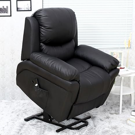 More4homes Madison Electric Rise Recliner Bonded Leather Armchair Sofa Home Lounge Chair Black