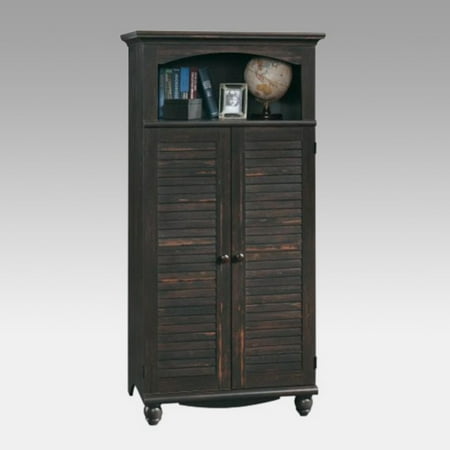 Sauder Harbor View Computer Armoire Antiqued Black Paint