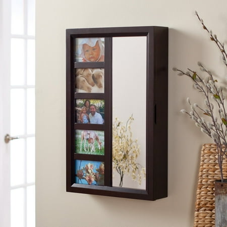 Collage Photo Frame Wooden Wall Locking Jewelry Armoire Expresso