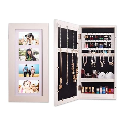 Amhuui Photo Frames Jewelry Armoire Wall Mounted Jewelry Hanging Display Cabinet Makeup Storage Bedroom Organizer