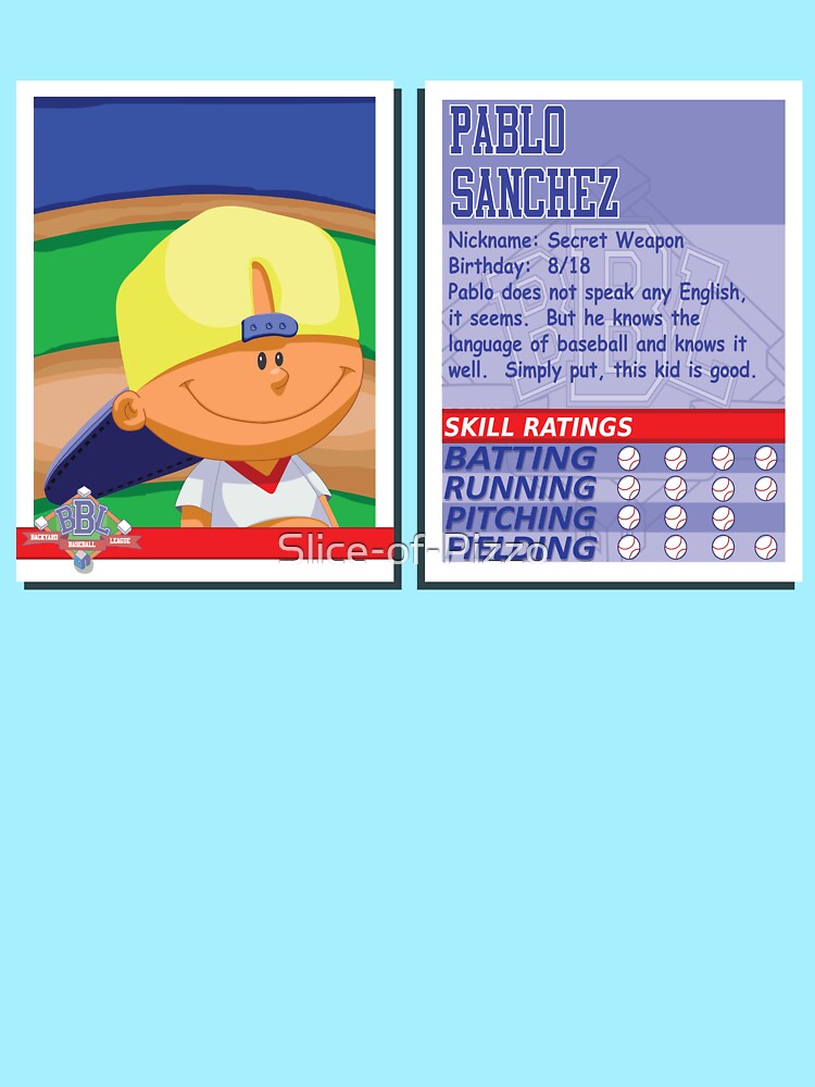 Buy pablo sanchez 1 t shirt jersey backyard baseball league costume secret weapon. As you may know i am a big fan of the old backyard baseball video gamesin fact i have a low burn campaign to get the original games on steamso with the little league world series here i got to thinking. Backyard baseball is a series of baseball video games for children which was developed by humongous entertainment and published by atariit was first released in october 1997 for macintosh and microsoft windowslater games were featured on game boy advance playstation 2 gamecube wii and iosit is part of the backyard sports series.