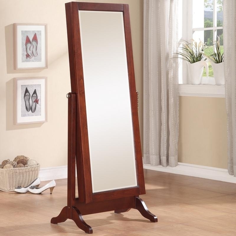 Cheval Jewelry Armoire With Mirror Walnut