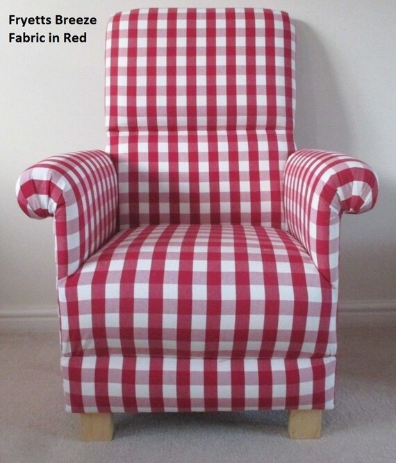 Fryetts Breeze Red Fabric Adult Chair Gingham Check Armchair White Nursery Bedroom Accent Shabby Chic