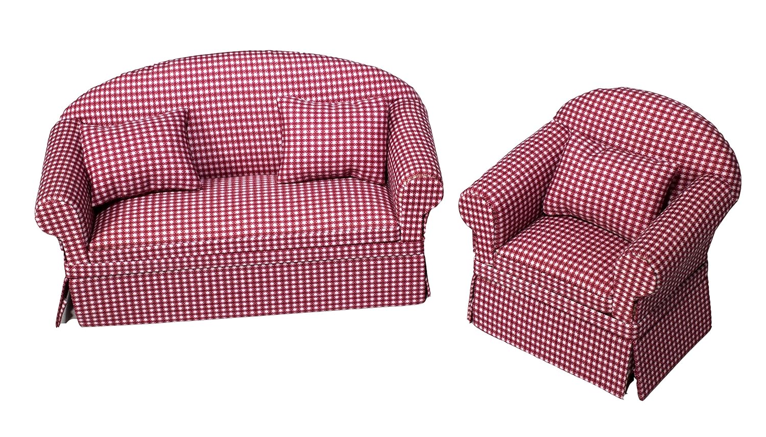 Inusitus Set Of Matching Dollhouse Sofa Armchair Dolls House Furniture Couch Chair Red Checkered 1 12 Scale Red Check