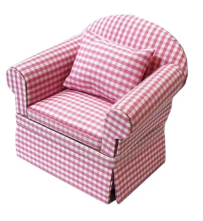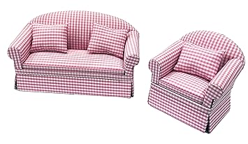 Inusitus Set Of Matching Dollhouse Sofa Armchair Dolls House Furniture Couch Chair Red Checkered 1 12 Scale Pink Check