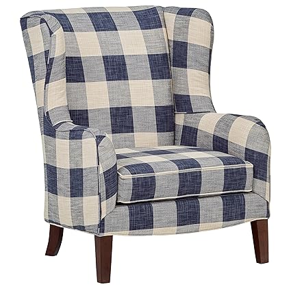 Stone Beam Sadie Blue Plaid Living Room Wingback Accent Chair 33 W Indigo