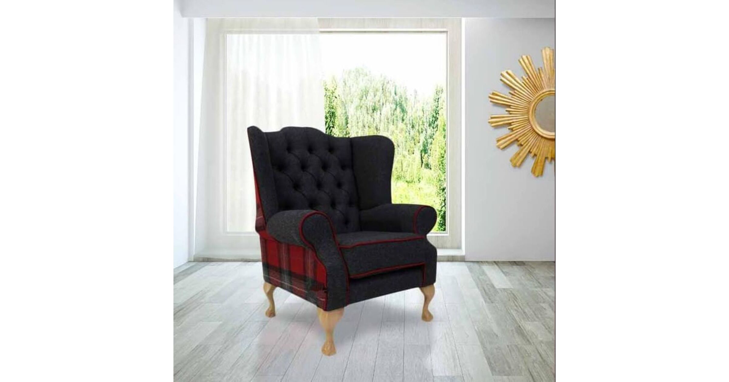 Plaid Chair Tartan Wing Back Fireside Queen Charcoal Grey