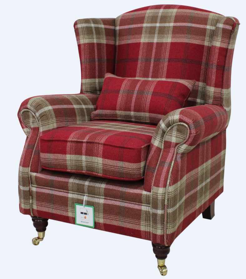 Details About Sherlock Wing Chair Fireside High Back Armchair Balmoral Red Check Fabric