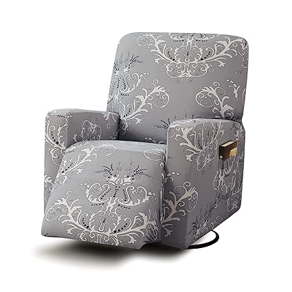 Tikami Stretch Recliner Chair Covers 1 Piece Sofa Slipcovers Furniture Protector With Remote Pocket Gray Print