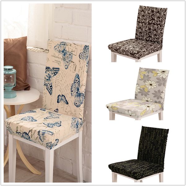 1 Pc Spandex Elastic Vintage Butterfly Beautiful Flowers Pattern Chair Covers Dustproof Stretch Modern Dining Party Seat Cover